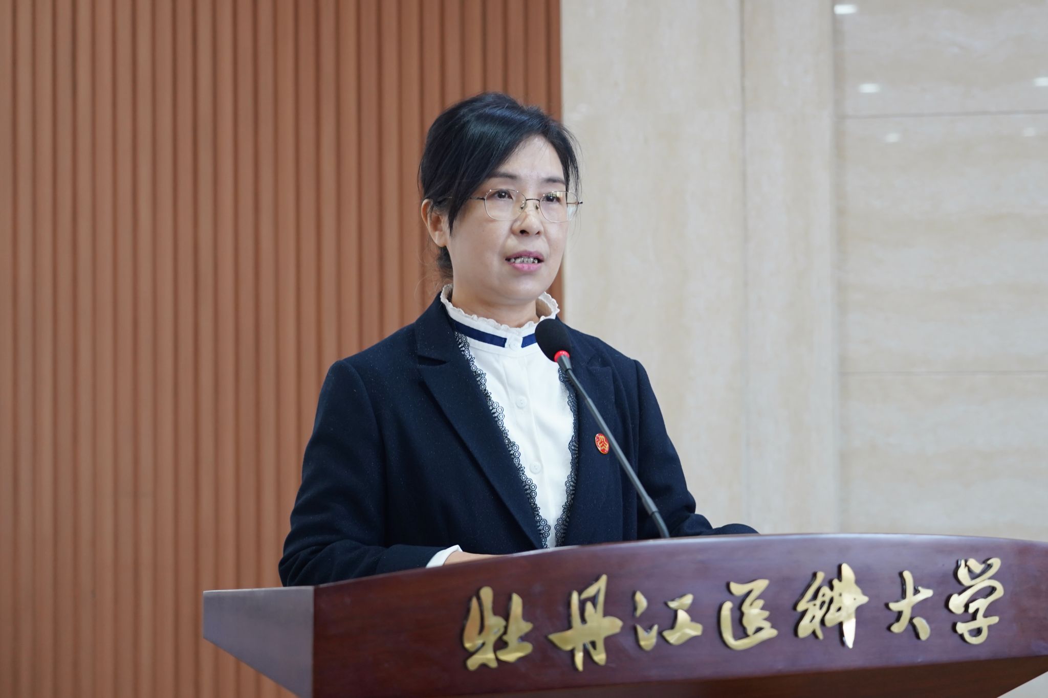 邱海燕对大会召开表示热烈祝贺,感谢校党委对妇女事业的支持,向一线女性师生致以问候与敬意。她表示,牡丹江医科大学作为区域医学核心阵地,培育了大批医药人才,众多优秀女性践行医者使命。邱海燕提出三点希望:一是铸牢政治忠诚,引领女性师生听党话跟党走;二是立足医学特色,为女教师、科研人员、医护人员及女大学生精准赋能;三是弘扬“四自”精神,树典型、优服务,打造“温暖娘家”。她强调,市妇联将通过业务指导、资源共享、联动协作全力支持,联合开展公益活动,共建高校妇联示范样板。