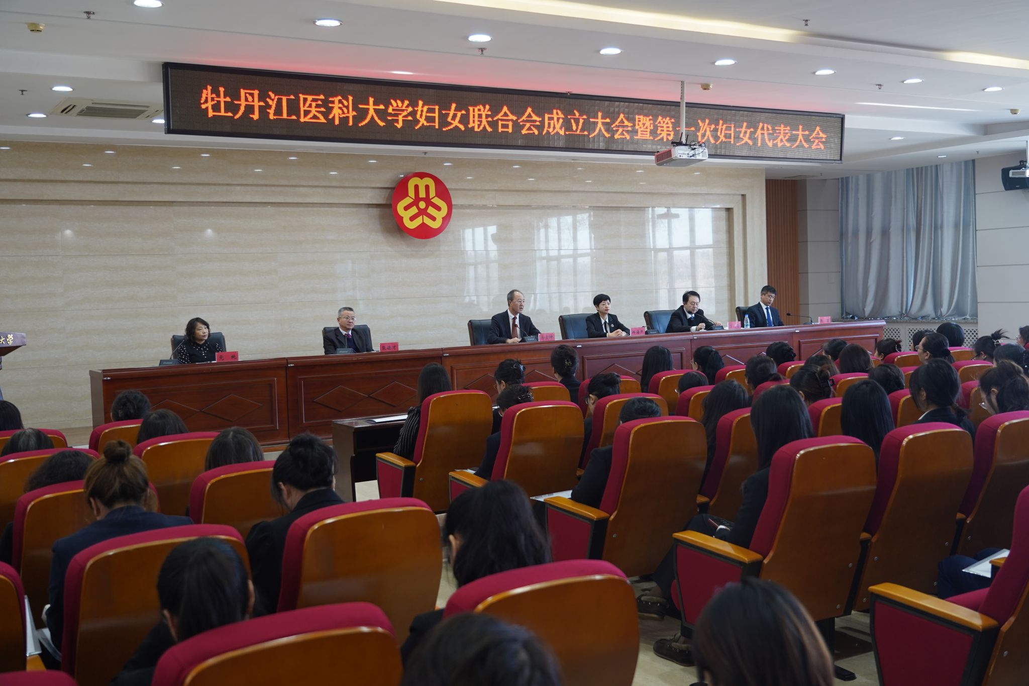 为深入贯彻落实习近平总书记关于妇女工作的重要指示精神,12月17日上午,牡丹江医科大学妇女联合会成立大会暨第一次妇女代表大会在临床技能中心17楼大会议室隆重召开。牡丹江市妇联主席邱海燕、副主席党纯、组织部部长曲鸿莅临指导,学校党委书记马宏坤,党委副书记张德才,党委常委、组织部部长张岩出席会议。会议由党委副书记、工会主席弓箭主持,学校全体妇女代表参会。