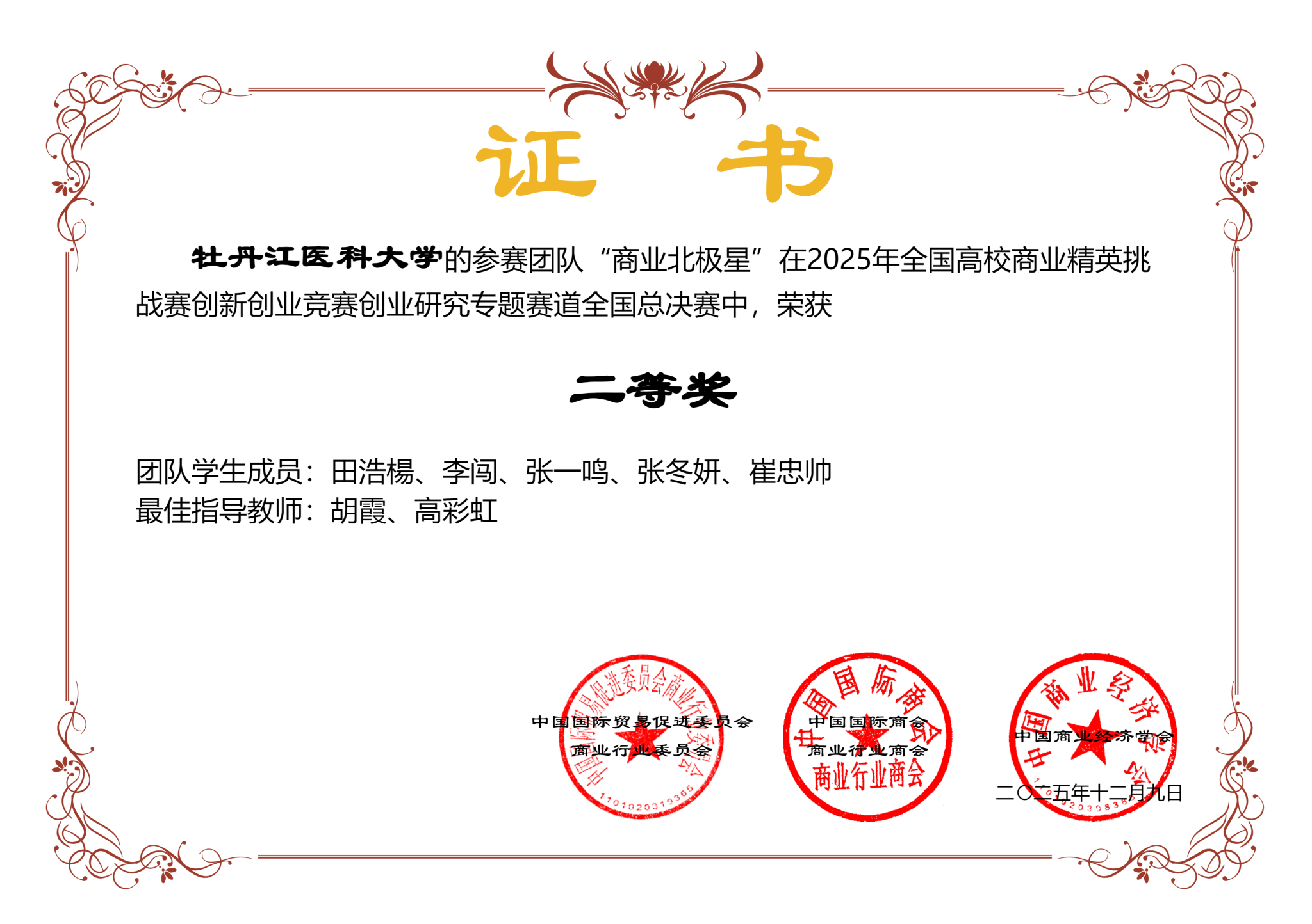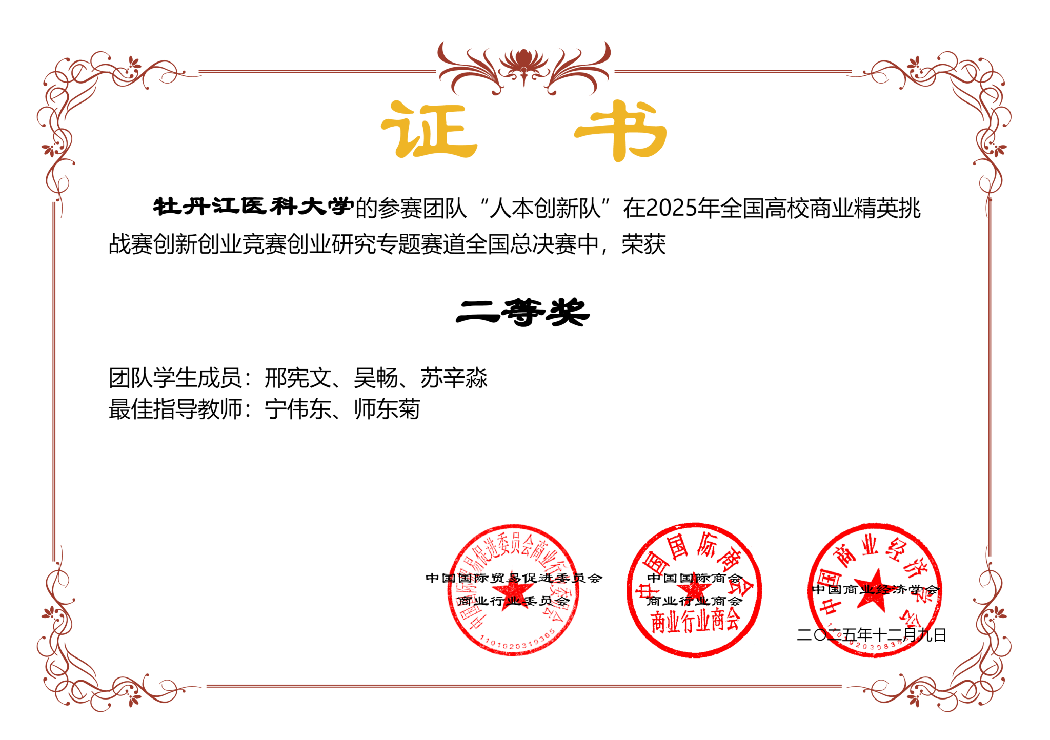 本次大赛由中国国际贸易促进委员会商业行业委员会、中国国际商会商业行业商会、中国商业经济学会联合主办,是纳入“全国普通高校大学生竞赛排行榜”的高水平全国性学科竞赛。赛事以“人本创业”为核心,聚焦创业价值挖掘、人性关怀落地、可持续发展影响三大方向,开展学术研讨与项目比拼,吸引全国高校精英团队踊跃参与,竞争激烈。此次获奖,既是对参赛师生辛勤付出的充分肯定,更彰显了我校大学生“四创”教育育人的扎实成效与应用型人才培养的丰硕成果。