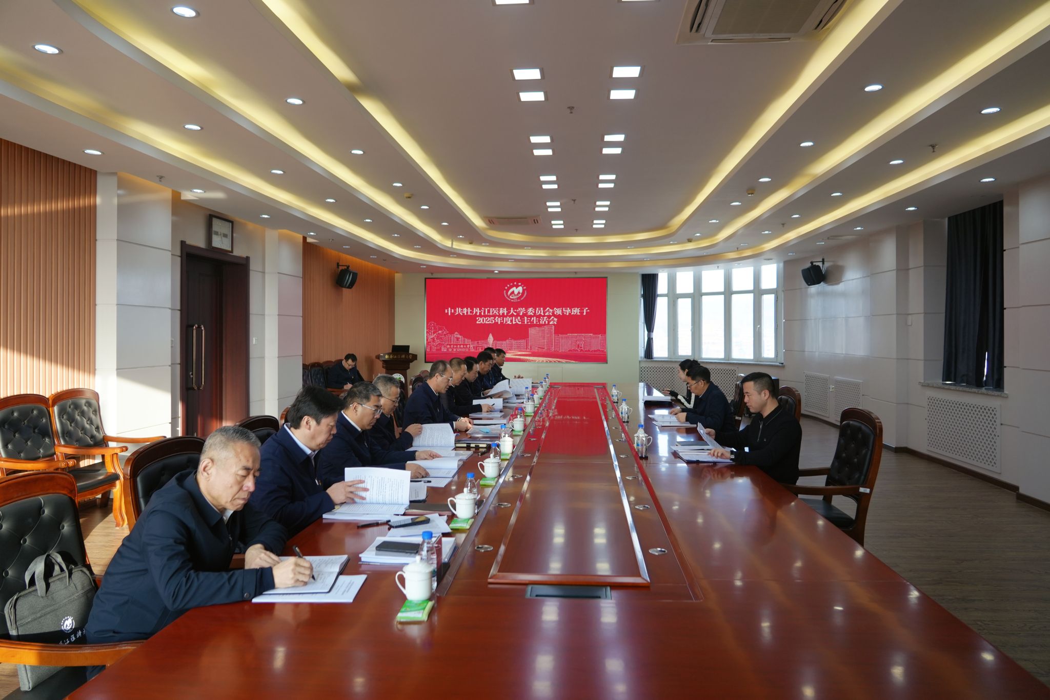学校党委对开好这次民主生活会高度重视。会前,制作《牡丹江医科大学党委领导班子2025年度民主生活会学习资料汇编》下发至每位班子成员进行自学,召开理论学习中心组学习会进行集中学习和交流研讨。通过向教职工广泛征求意见建议,深入基层调研,认真开展谈心谈话,严格对标对表,结合典型案例,积极查找不足,深挖思想根源,认真撰写对照检查材料,为开好年度民主生活会作了充分准备。