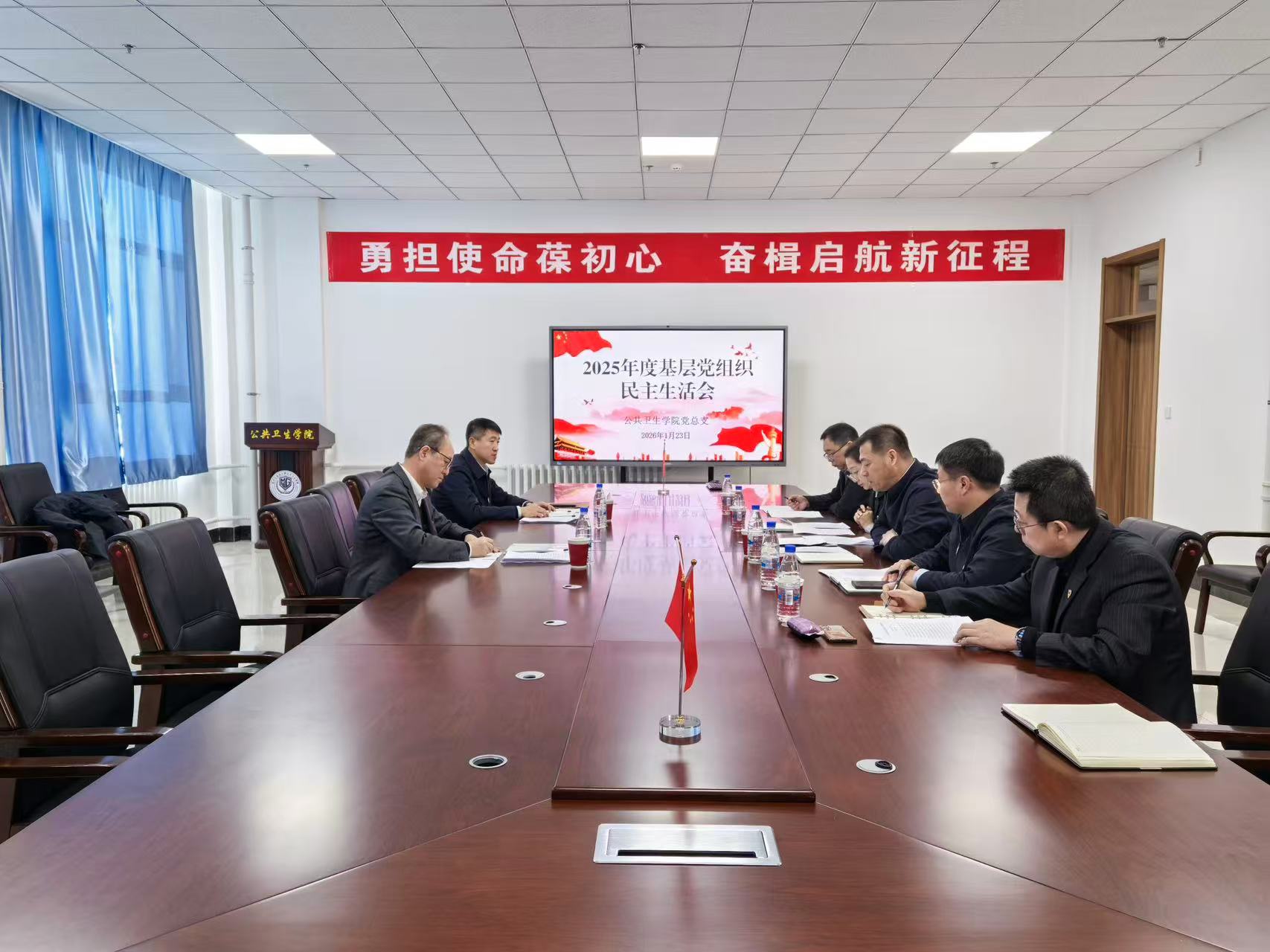 按照党中央和省委部署要求,以及学校党委工作安排,2026年1月23日上午,公共卫生学院党总支在公共卫生大楼党员之家召开2025年度民主生活会。会议深入学习贯彻习近平新时代中国特色社会主义思想,全面贯彻落实党的二十届四中全会精神,以打攻坚战、持久战的决心和恒心,锲而不舍落实中央八项规定精神,推进作风建设常态化长效化,以优良作风凝心聚力、真抓实干,奋力开创学院事业高质量发展新局面,为学校建设高水平特色应用型医科大学贡献公卫力量。