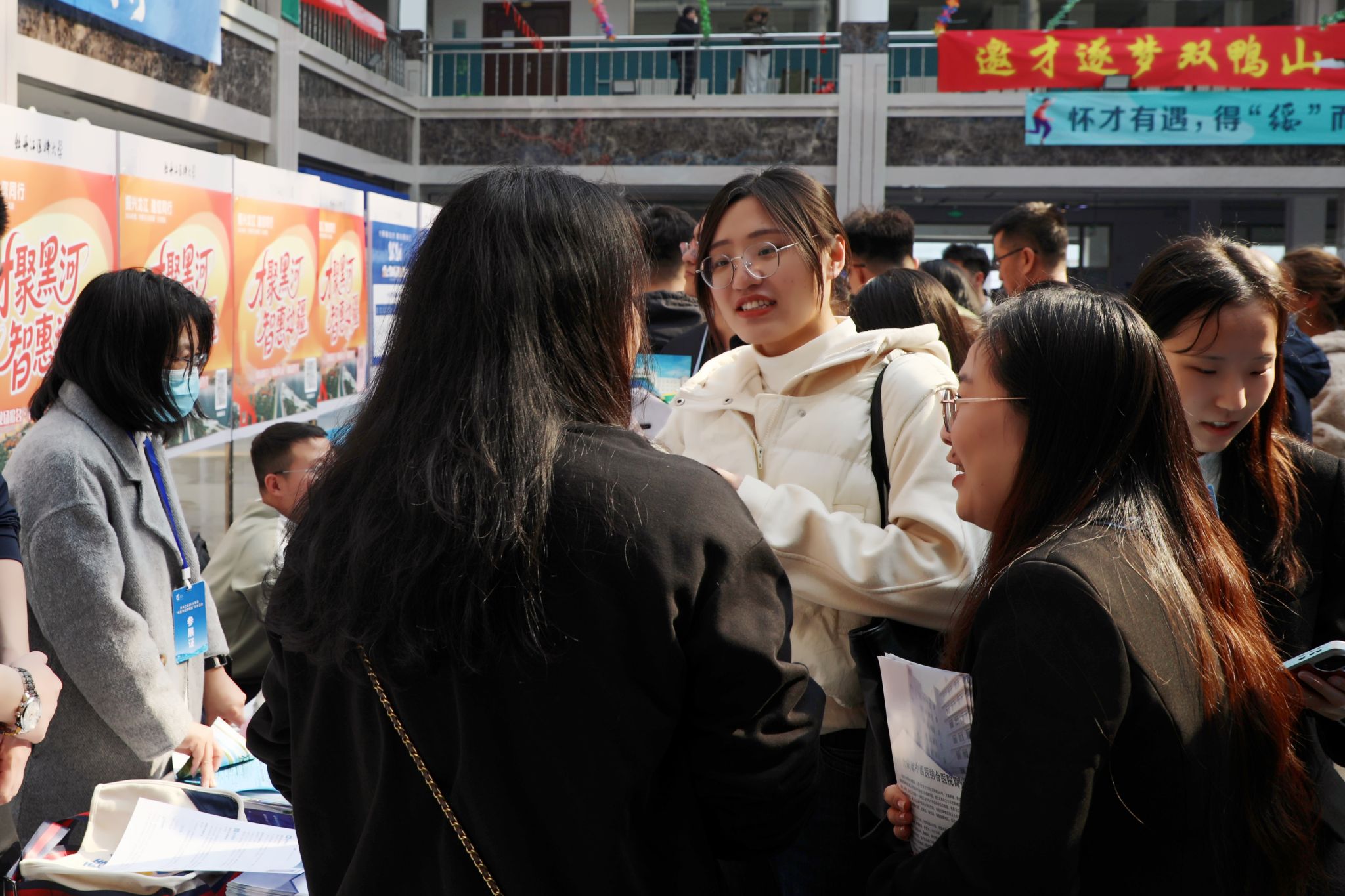 本次活动充分发挥省委组织部、省教育厅、省人社厅的顶层设计与政策牵引作用,通过“政府搭台+高校联动+地市组团”模式,精准对接龙江医疗卫生领域人才需求。全省13个地市组织医疗卫生单位携临床医学、护理学、药学等优质岗位进场揽才,黑河市更推出“聚才兴边”医疗专项计划,提供103个岗位招引161名人才,以“现场报名-笔试-面试-签约”一站式服务实现高效引才。
