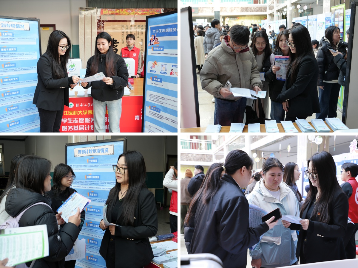 此次借助双选会开展集中宣传,是校团委紧扣毕业生就业关键节点、扎实推进西部计划招募工作的重要举措。自3月1日下发西部计划宣传招募通知以来,校团委通过官方公众号推送、咨询群答疑、线上宣讲会等多种形式开展政策宣传。截至目前,已有95名学子在西部计划报名系统中完成注册,报名人员覆盖临床医学、医学影像学、护理学、药学、预防医学等多个专业,涵盖本科生与研究生,为我校2026年西部计划招募工作奠定了坚实基础。