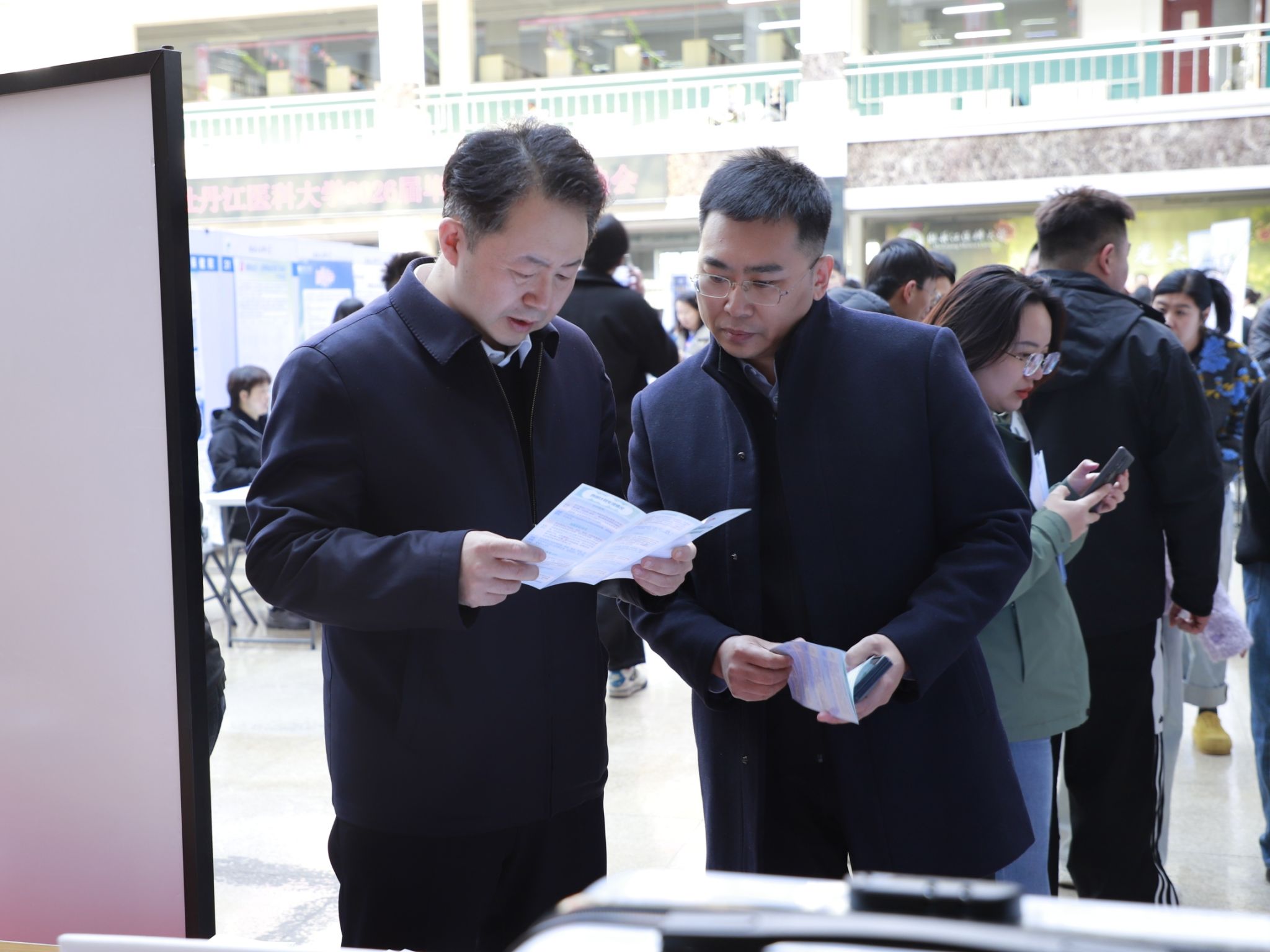 学校党委副书记弓箭到场指导,详细了解宣传组织、岗位设置及毕业生报名意向,与现场师生深入交流,并对做实招募宣传、精准服务青年就业提出明确要求。