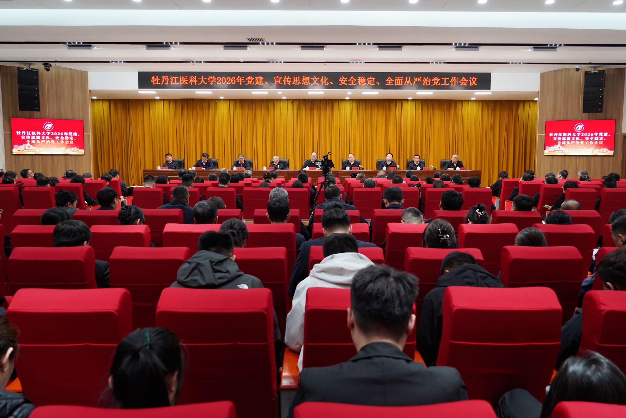 马宏坤作总结性讲话,指出四项工作构成了“方向引领—精神凝聚—安全保障—纪律约束”完整工作体系,肯定2025年学校在教学、科研、人才、医疗等领域的标志性成果,同时点明当前工作短板。他强调,2026年是“十五五”开局和学校更名后内涵建设关键之年,要以党建赋能、宣传凝心、安全护航、从严保障,扎实开展树立和践行正确政绩观学习教育,强化舆论引导与安全隐患整治,持之以恒落实中央八项规定精神,把四项工作效能转化为高质量发展动力。全校要持续深化能力作风建设,坚持“勤学习、重调研、优作风、抓落实”,健全“四个体系”闭环机制,以清单化、项目化推进重点工作,纠治形式主义、官僚主义,以数智赋能提升治理效能,实干担当服务发展大局,奋力建设高水平特色应用型医科大学。