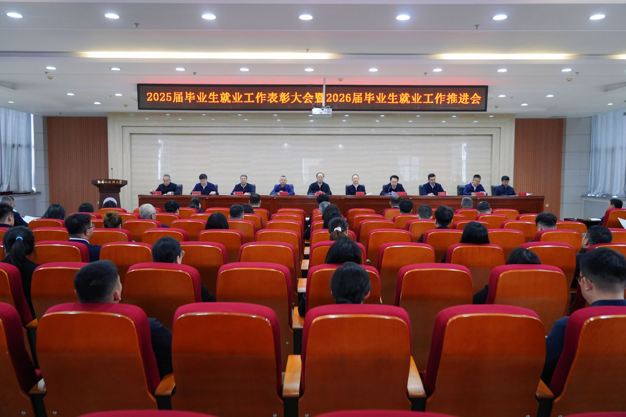 4月28日下午,我校在临床技能实训中心召开2025届毕业生就业工作表彰大会暨2026届毕业生就业工作推进会。此次会议旨在深入贯彻落实党的二十大精神和习近平总书记关于高校毕业生就业工作的重要指示批示精神,全面落实全国及全省高校毕业生就业创业工作视频会议精神,系统总结2025届就业工作经验,表彰先进典型,并对2026届毕业生就业工作进行再动员、再部署。学校领导班子成员、各基层党委(党总支)书记、院长、分管就业工作负责人、全体辅导员及部分职能部门负责人参加会议。