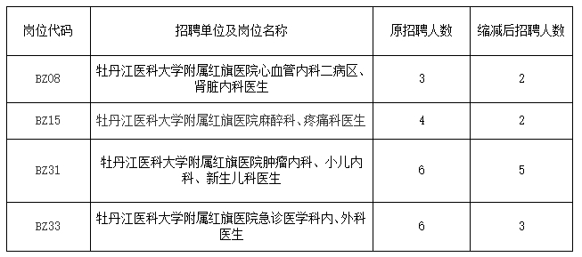二、以下岗位因考生人数不足,缩减招聘数量。