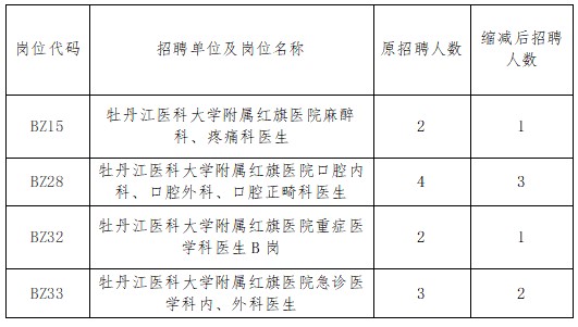 根据《牡丹江医科大学2025年第一次公开招聘事业单位编制人员公告》(以下简称公告)的有关要求,现将笔试后取消及缩减招聘人数岗位公告如下: