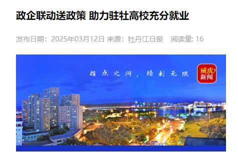 3月7日,由市人社局联合市委组织部、部分企业开展的牡丹江市“政企联动送政策进校园”活动正式启动。活动“首站”走进牡丹江医科大学,深入贯彻落实国家、省关于促进高校毕业生等青年就业工作决策部署和市委、市政府工作要求,进一步推动驻牡高校毕业生高质量充分就业,提升本地高校毕业生留牡率和创业活力。