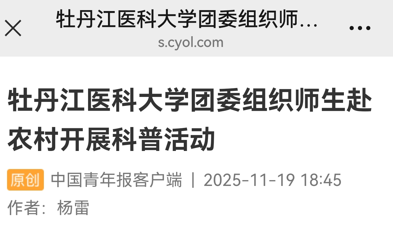 日前,牡丹江医科大学团委联合公共卫生学院师生组建团队,赴牡丹江市阳明区五林镇五星村开展“科普护航健康,科技助力绿色发展”的乡村科普实践活动。