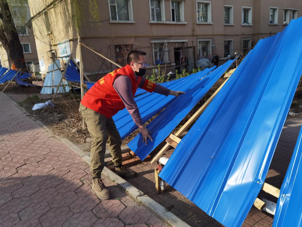 外语党支部党员张修文、王元奕同志作为学校组织部全校征集的首批志愿者,助力爱民区黄花街道,驻守房产小区,早6点至晚19点不间断对出入人员进行信息排查和防控管理,还要负责配合引导小区群众开展核酸检测、运送防疫物资、发放蔬菜包、清理小区垃圾,同时与社区和公安密切配合,及时解决居民突发应急事件和日常生活基本保障工作。他们主动担当,冲锋在前,深入一线,同心战“疫”,为疫情防控注入“志愿力量”。