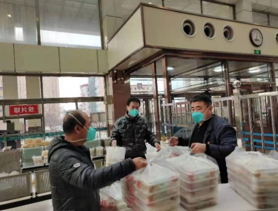 餐饮有保障,战疫有力量。疫情之下的爱民区物资采购、配餐都比较困难,现有餐厅无法满足高峰期1500人的用餐需求。院领导实地走访考察,决定餐饮计划两步走,一是红旗餐厅优先保障患者及家属的用餐需求;二是在院坚守岗位职工的餐食由配餐公司供应。为了全力保障大家的用餐需求,总务科从优化订餐流程、确保用餐时间、建立安全台账,周密安排改善一蔬一饭。餐厅的工作人员实行闭环管理,每日核酸监测;餐品制作过程中,严格佩戴口罩,做好通风消毒和手卫生;采购的食材经专人消杀后方可进入后厨烹饪;接送餐饮时,必须检查配餐人员的24小时核酸报告,全力保证患者及医务人员“舌尖”上的安全。