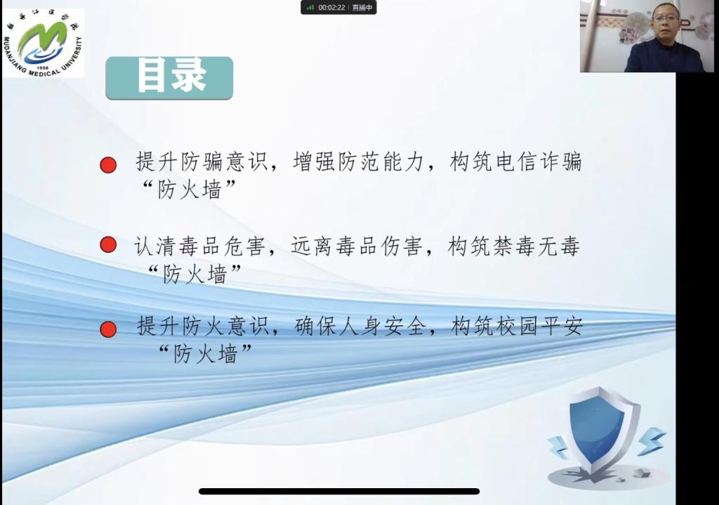 边庆峰分别就提升防骗意识,增强防范能力,构筑电信诈骗“防火墙”;认清毒品危害,远离毒品伤害,构筑禁毒无毒“防火墙”;提升防火意识,确保人身安全,构筑校园平安“防火墙”三个方面,采用理论依据同现实案例相结合的方式,以案释法、以法论事,进行深入浅出地讲解。通过介绍电信诈骗的犯罪特点、诈骗分子常用的手段等,教育引导机关师生如何处理日常生活中遇到的各类诈骗危机,并希望大家牢记“十个凡是”和“六个一律”,时刻保持警惕之心;通过介绍毒品的种类、吸食毒品的原因及危害,提醒大家要经常学习了解毒品基本知识,接受禁毒法律法规教育,懂得“吸毒一口,掉入虎口”的道理;通过介绍引发校园火灾事故的原因、火灾预防的措施及火场逃生的方法等消防安全知识,进一步增强了大家的应急处置和自护自救能力,切实做到“人人把好防火关,有备无患保平安”。