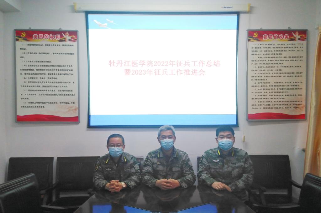 会上,武装部副部长边庆峰通报了2022年各学院男性大学生在黑龙江省内参军入伍人数及量化考核排名情况,公布了各学院男性大学生2023年黑龙江省内参军入伍任务数,明确了学校征兵工作站各职能部门的主要工作任务,对《牡丹江医学院大学生应征入伍校内优惠政策暂行办法》和新修订的《牡丹江医学院征兵工作量化考核评分细则》文件进行传达。