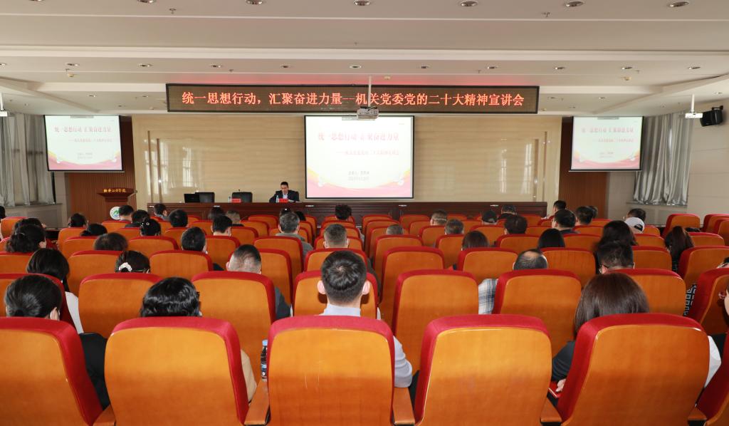 为深入学习宣传贯彻党的二十大精神,引领机关广大党员干部把思想和行动统一到大会精神上来,推进党的二十大精神更深更实融入机关工作中,2023年3月23日下午,机关党委在临床实践技能中心17楼会议室举办了学习贯彻党的二十大精神宣讲会。机关党委书记范秀坤作宣讲报告。机关党委范围内科级及以下党员干部参会。会议由机关党委委员郭丽双主持。
