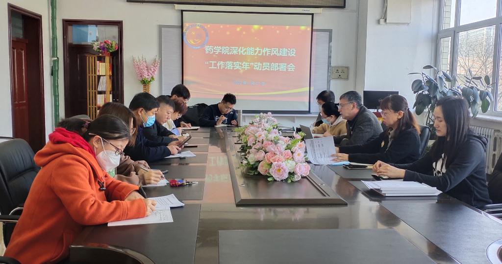 会议传达学习了学校深化能力作风建设“工作落实年”会议精神,总结了药学院2022年“能力作风建设年”活动开展情况,对《牡丹江医学院深化能力作风建设“工作落实年”活动实施方案》及任务分解进行了学习解读。