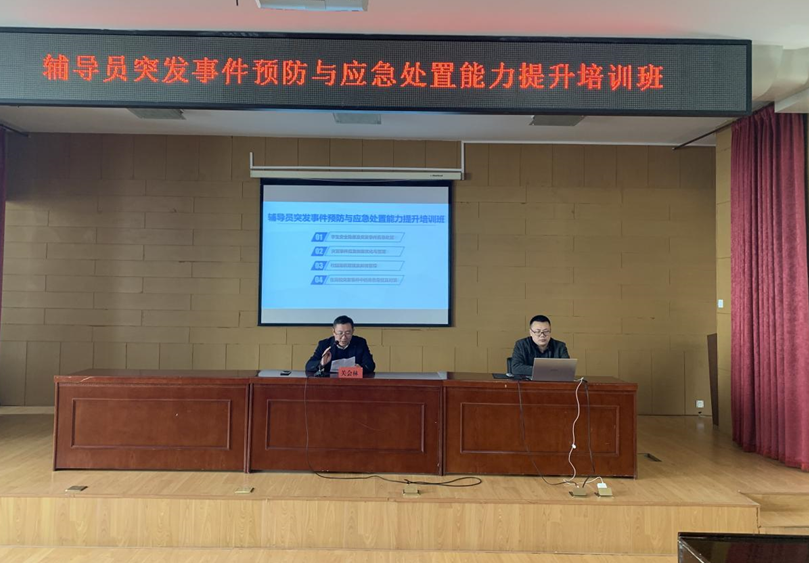 为深入推进能力作风建设“工作落实年”,全面深入学习贯彻习近平新时代中国特色社会主义思想和党的二十大精神,提升辅导员应对突发事件应急管理水平,结合2023年国家安全教育日活动,学生工作部于4月12日在图书馆报告厅举办了为期2天的“辅导员突发事件预防与应急处置能力提升培训”。培训由学生工作部副部长关会林主持。学生工作部、各学院学生工作负责人及专兼职思政辅导员参加培训。