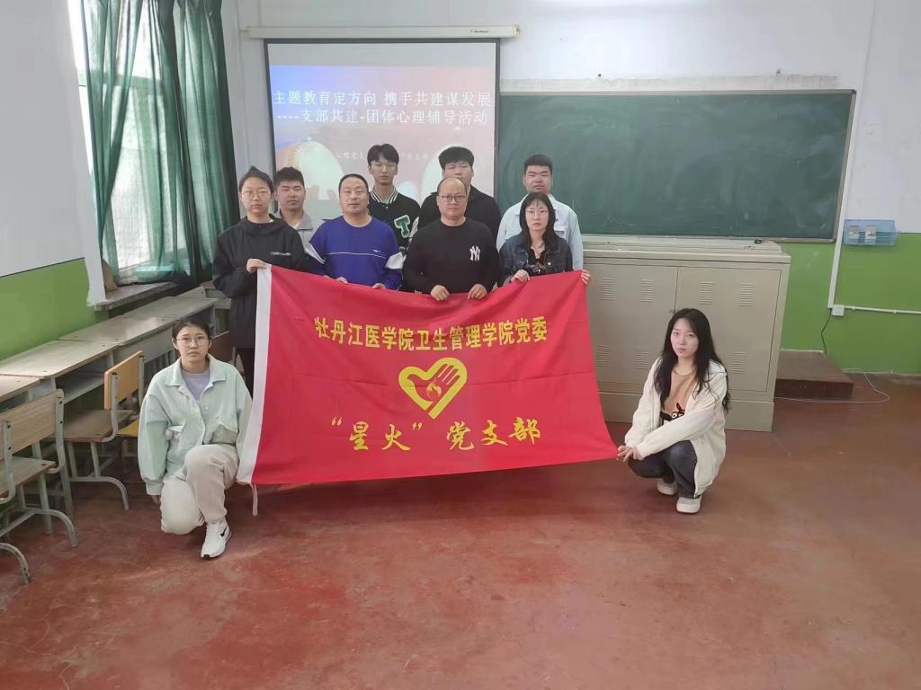为充分发挥公共卫生学院心理学专业优势,打造“党专结合”党建新模式,不断整合支部力量,携手共促发展。2023年5月5日,卫生管理学院于教学楼管三小教室开展“主题教育定方向 携手共建谋发展 ”支部共建-团体心理辅导活动,本次活动邀请心理党支部书记张殿君组织,“星火”党支部书记樊俊杰和全体学生党员参加。