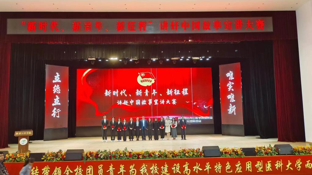 为了更好地学习宣传贯彻党的二十大精神,进一步加强学生思想政治教育,深入落实立德树人根本任务,培养德智体美劳全面发展的社会主义建设者和接班人,激发广大团员青年在全面建设社会主义现代化国家的新征程上踔厉奋发、勇毅前行的决心和斗志, 5月17日由牡丹江医学院校团委主办,大学生社团联合会及演讲与口才协会承办的“新时代、新青年、新征程”讲好中国故事宣讲大赛在我校文体馆大礼堂举办。我校8名学生代表参加了本次比赛,本次比赛特邀了教师发展与教学评估中心副主任刘俊峰、学生处副处长宁燕、马克思主义学院马克思主义基本原理教研室主任王艳芹,校团委副书记陈馨作为此次大赛的评委,我校各学院学生代表和研究生代表观看了本次比赛。