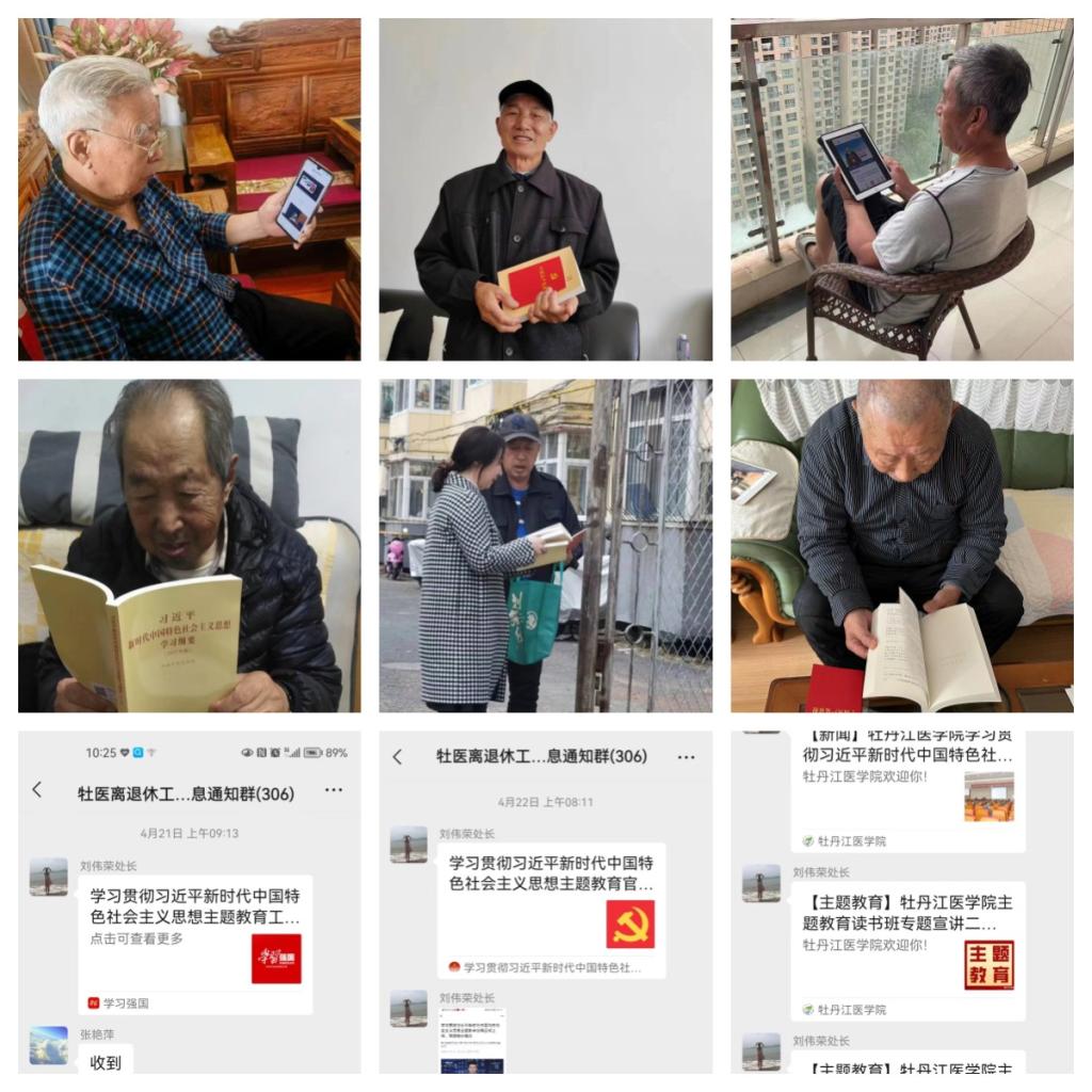 固本强基,提质增效,“指间学习”实现学习随身学。离退休党总支打造“指尖上”的主题教育阵地,把牡医离退休信息微信群作为弘扬习近平新时代中国特色社会主义思想的重要平台,发布“主题教育随时听”、“主题教育微课堂”等学习资源,把新媒体作为落实主题教育工作的重要抓手,扩大了学习覆盖面。线上学习方式推动了理论学习常态化,让主题教育学习在老干部中蔚然成风。