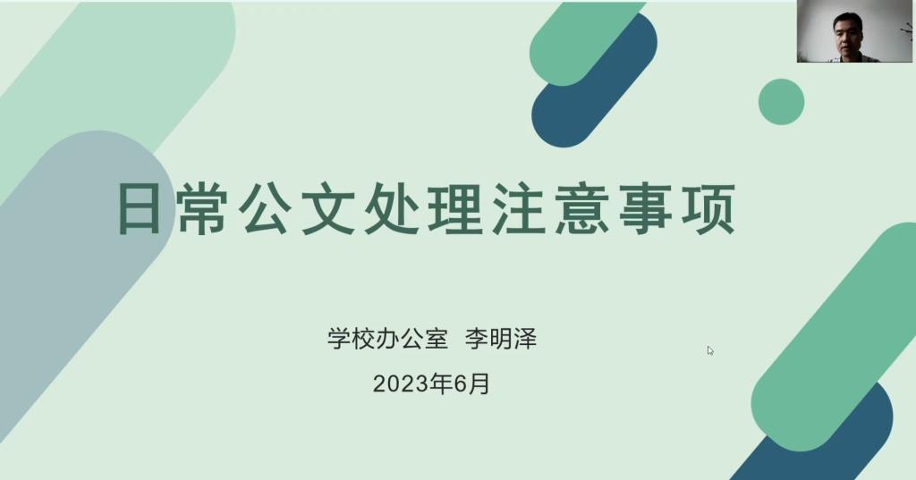 为持续深化能力作风建设工作向纵深推进,促进机关广大教职工的专业素养、履职能力、工作质效、服务能力不断提升,干事创业的精气神和动力活力有效提振,2023年6月26日,机关党委组织开展“业务大讲堂”活动第十三讲,诚邀学校办公室副主任李明泽以《日常公文处理注意事项》为题开展专题讲座,机关教职工通过钉钉直播积极参与收听收看。