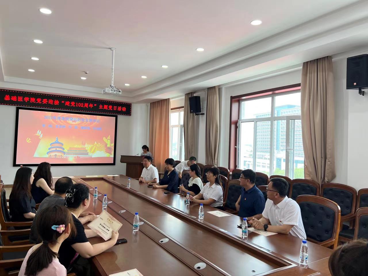 为庆祝中国共产党成立102周年,进一步总结经验、树立标杆、鼓励先进,激励广大党员干部发挥党支部战斗堡垒作用、选树先进典型,激发党员活力,开展好习近平新时代中国特色社会主义思想主题教育,2023年6月30日,基础医学院党委在基础楼9楼会议室举办了庆祝“建党102周年”主题党日活动,对2022年度表现突出的党支部书记、党的二十大精神宣讲员、学习强国标兵、表现突出的学生党员等进行奖励。活动由正科级组织员周晶琳主持。