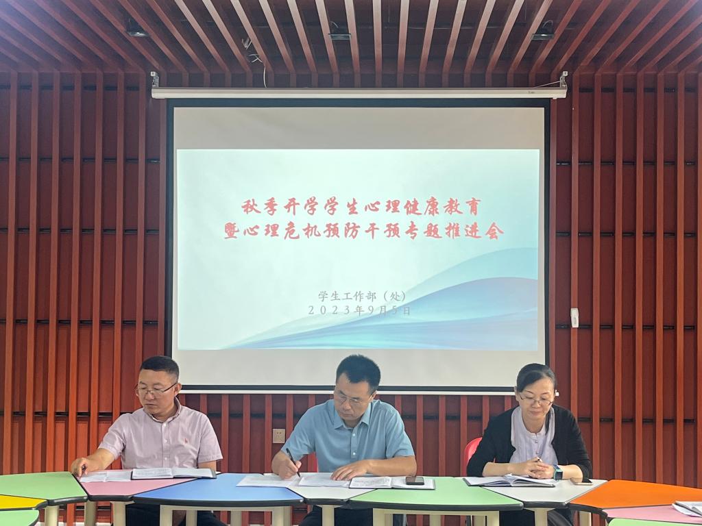 为全面了解我校秋季开学心理健康教育情况,重点关注学生心理危机预防干预工作,及时给予学生人文关怀和心理疏导,有效预防学生心理危机事件的发生,保障学生心身健康与校园安全稳定,2023年9月5日上午,学校学生工作部(处)在心理健康教育中心召开秋季开学学生心理健康教育暨心理危机预防干预工作专题推进会。学生工作部(处)部(处)长王俊林,副部(处)长关会林、宁燕,各学院学生工作负责人及心理健康教育中心教师参加了本次会议。