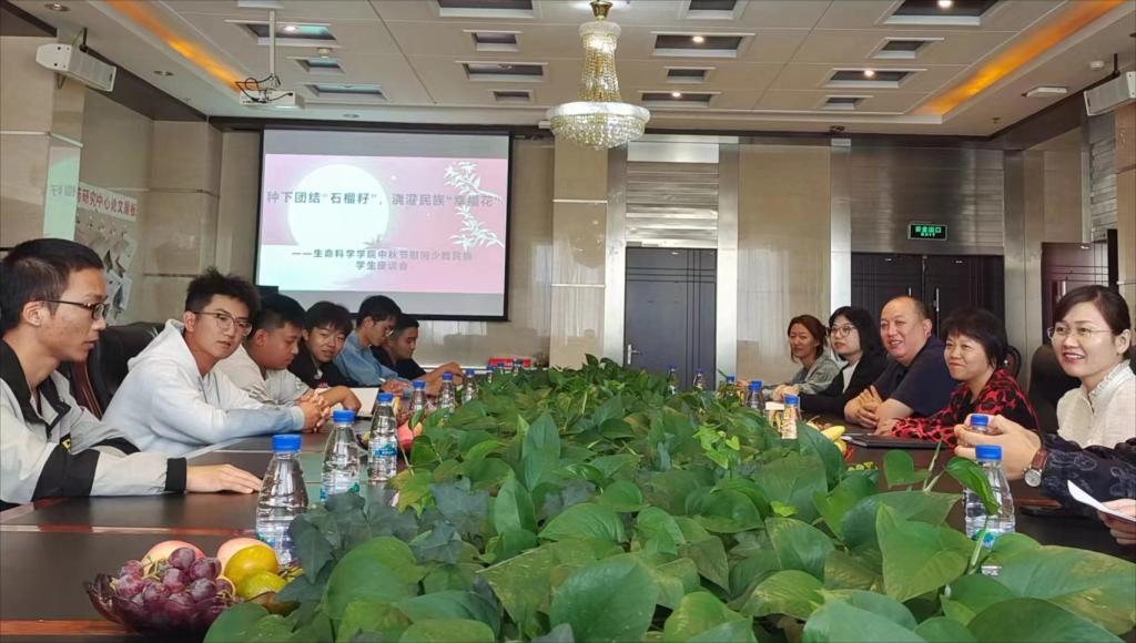 为全面加强我校铸牢中华民族共同体意识教育,丰富少数民族学生校园生活,促进各民族师生广泛交往交流交融,落实习近平总书记关于民族团结系列讲话精神,生命科学学院于9月26日在医药研究中心6楼会议室组织召开中秋节慰问少数民族学生座谈会。学院院长袁晓环、副院长李长荣、武艳和学院17名少数民族学生代表参加本次座谈会。座谈会由辅导员许晶主持。