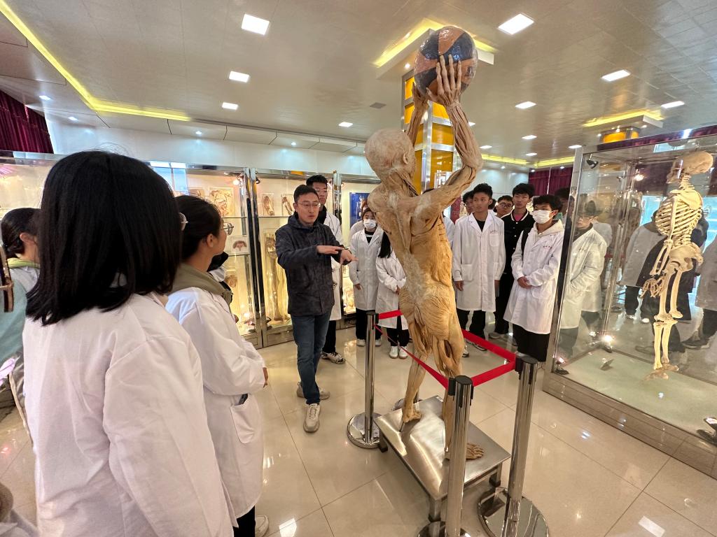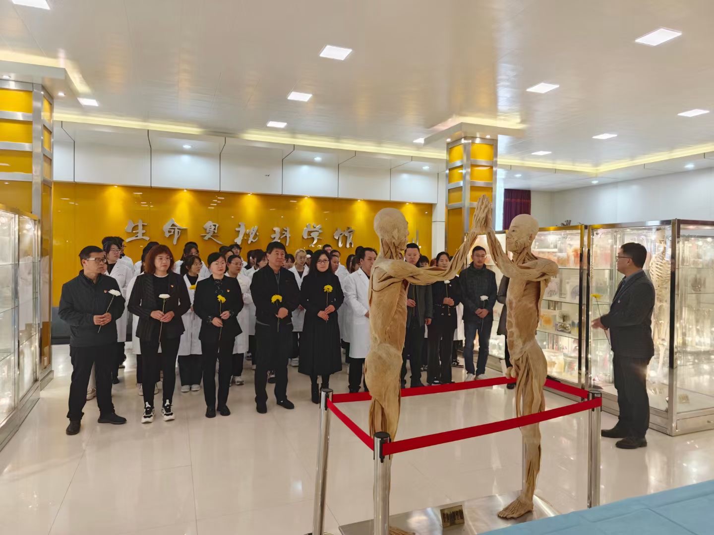 最后在解剖教研室教师的带领和讲解下,全体师生兴趣盎然地参观了人体生命奥妙馆。