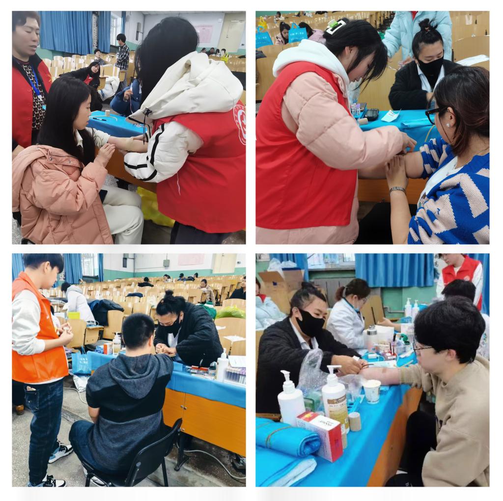 活动当天,在学校志愿者们的组织下,献血师生自觉排起长队;在血站工作人员和志愿者们的引导下,登记资料、测量血压、取样化验、现场献血,整个活动有序进行。