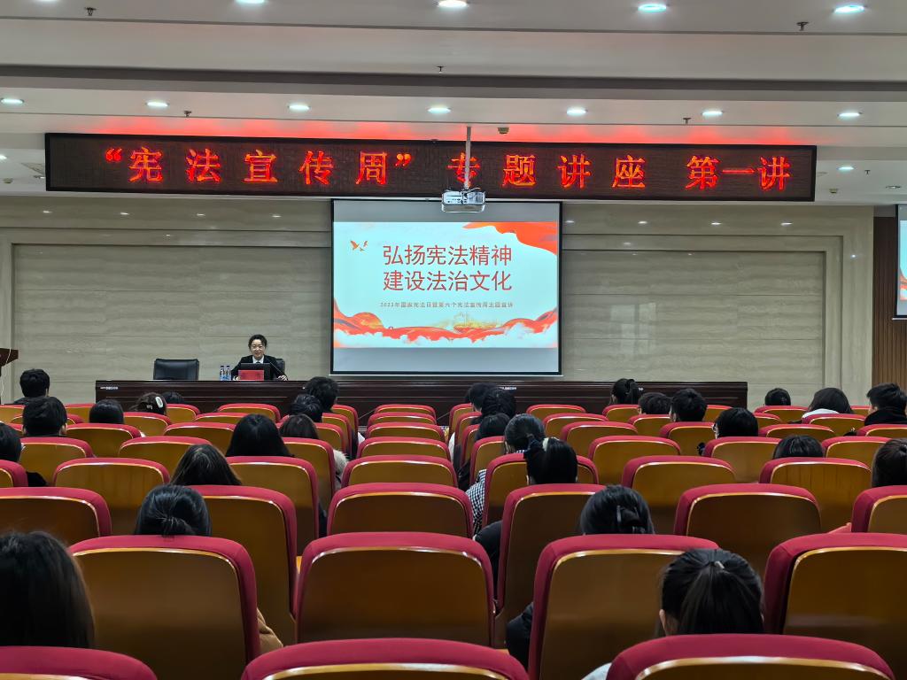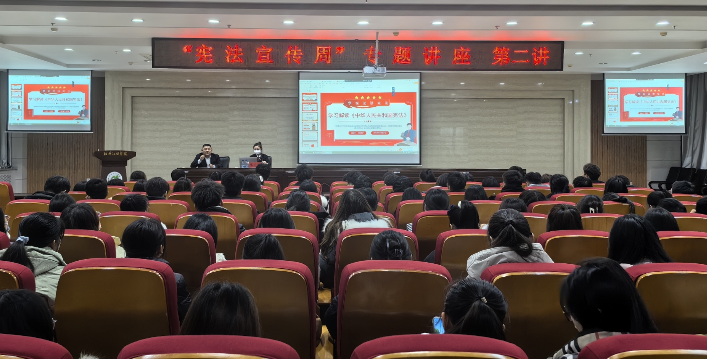 为深入贯彻习近平法治思想,落实“八五”普法规划,推动全省“12.4”国家宪法日暨全国法制宣传日系列宣传活动的文件精神,学生工作部组织开展了“宪法宣传周”专题讲座。