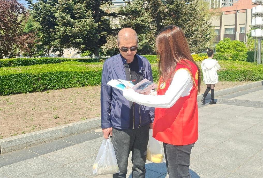 为了提高社会对遗体器官捐献的认识、理解和支持,鼓励更多的人参与到遗体器官捐献事业中来,2024年5月8日上午,基础医学院党委组织领导班子成员、解剖党支部党员、部分甘棠爱心之家的无课本科生和部分研究生在江滨公园参加了牡丹江市红十字会2024年“红十字博爱周”宣传活动,开展了“定航培根”主题党日教育暨遗体器官捐献科普知识志愿服务宣传活动。通过师生志愿服务活动的方式达到科学普及、关爱生命和传递爱心的社会服务功能。