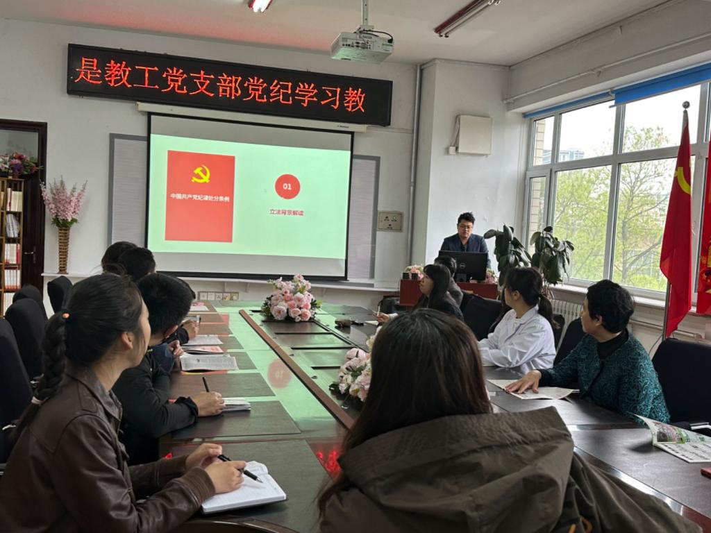 学院“弘毅”教师党支部书记赵玉佳、“求是”教师党支部书记孙宁、“远志”学生党支部组织委员石杰分别以“增强党的纪律观念,争当合格共产党员”“学条例,守党纪”“全面加强党的纪律建设,为以中国式现代化全面推进强国建设和民族复兴伟业提供坚强纪律保障”为主题进行专题党课宣讲。学院党总支领导班子成员、全体师生党员、积极分子参加党课活动。