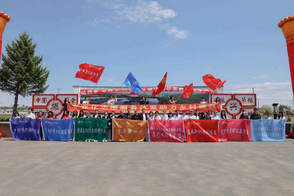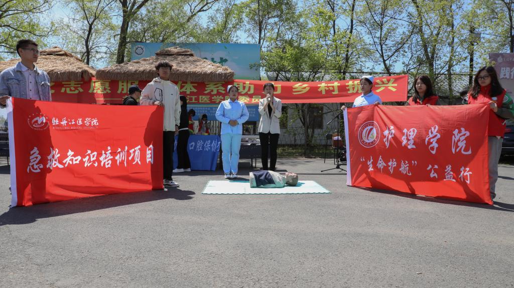 5月16日早,一辆满载着牡丹江医学院乡村振兴实践团队员的大客车驶进了宁安市渤海镇上官地村。绚丽的旗帜,整齐的队伍,在当地村民和游客的欢呼声中来自全校各学院、部门依托专业技能组建的八支专业化服务队伍走进活动会场,得到了参会村民的热烈欢迎。