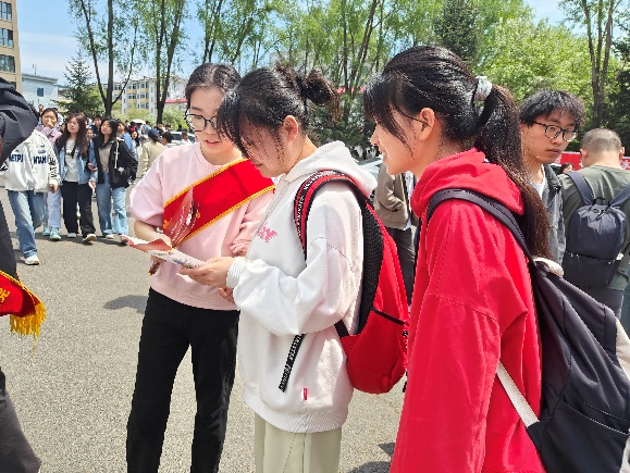 牡丹江医学院的校园里,一幅幅醒目的营养健康宣传条幅迎风飘扬,临床技能中心电子屏上滚动播放着今年的营养周宣传片。5月13日中午,学校食堂前的广场上热闹非凡,志愿者们穿梭于人群之中,分发着精心制作的营养知识宣传折页,吸引了大批师生的目光和咨询。