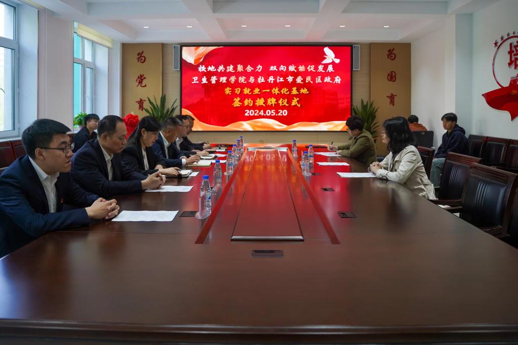 为全面贯彻党的二十大精神和习近平总书记在龙江视察期间的重要讲话重要指示精神,进一步推动校地双方在人才培养及创业就业等方面开展深度合作,拓展留省就业新空间。5月20日上午,在学生处二楼会议室,举办卫生管理学院与牡丹江市爱民区政府实习实训基地签约授牌仪式。卫生管理学院党委书记魏赟鹏、院长师东菊、副院长郭继民、汪海波、副处级辅导员张久涛、实习就业科长刘磊。牡丹江市爱民区政府副区长孙展鹏、卫健局局长柳群、民政局局长李红艳出席签约仪式。会议由卫生管理学院党委书记魏赟鹏主持。