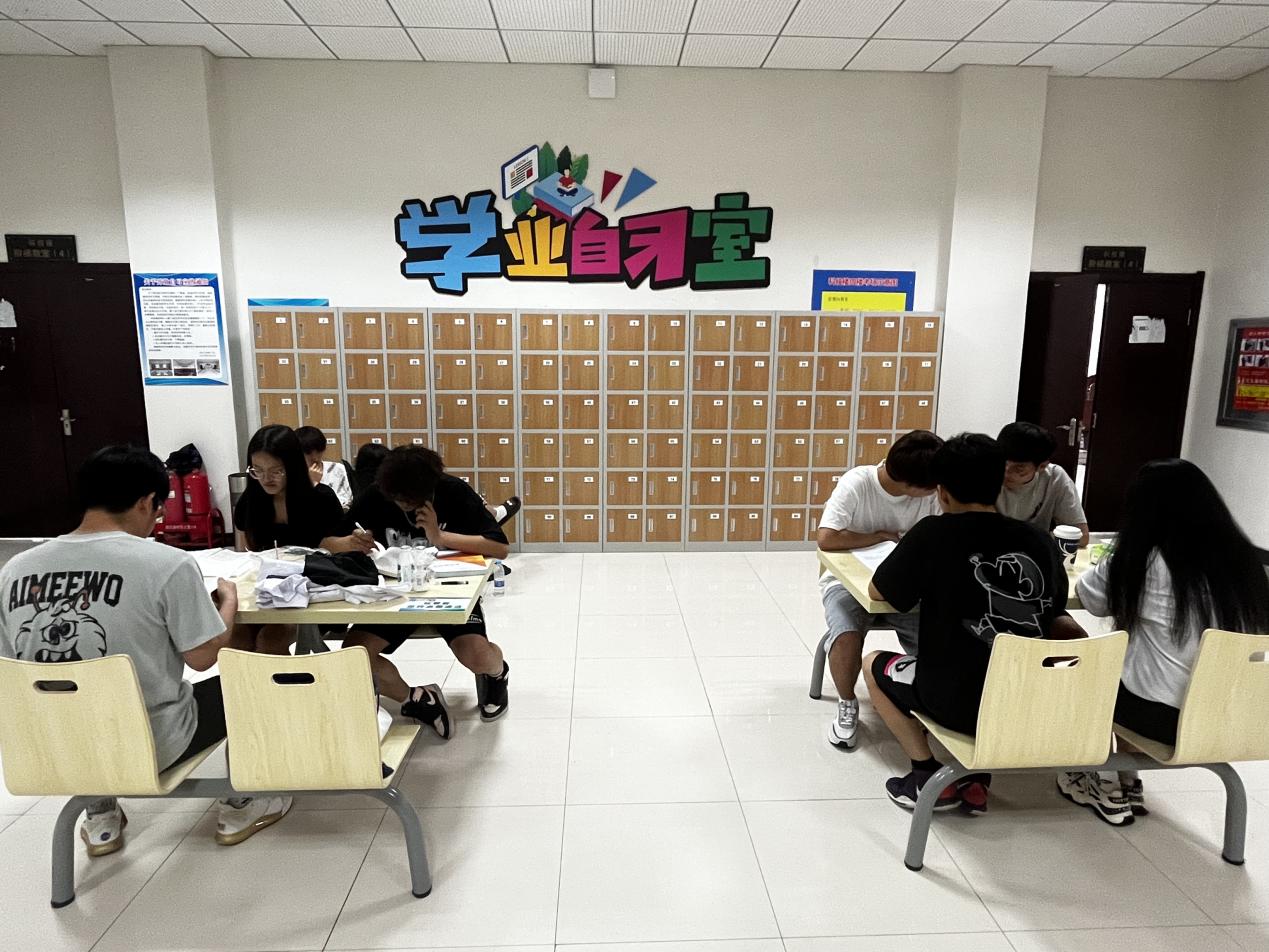 我校在上学期已将科技楼3-6阶梯设为考研自习室和学业自习室,运行效果良好,学习氛围浓厚,为了让前来自习的学生有一个静谧、舒适的学习环境,学校对科技楼自习室空间和环境进行了升级改造,并配备了储物柜、临时就餐桌椅、饮水设备等设施,供自习的同学使用。