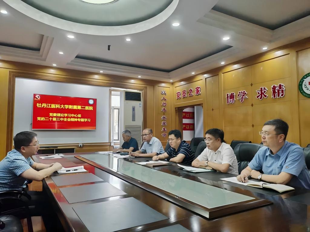 2024年8月27日下午,牡丹江医科大学附属第二医院在办公楼五楼会议室召开党委理论学习中心组2024年第10次学习会议,专题学习党的二十届三中全会精神,传达学习习近平总书记在主持中共中央政治局第十五次集体学习时发表的重要讲话精神。党委书记李同伟主持会议并作总结讲话,医院党委理论学习中心组成员及处级领导干部参加会议。