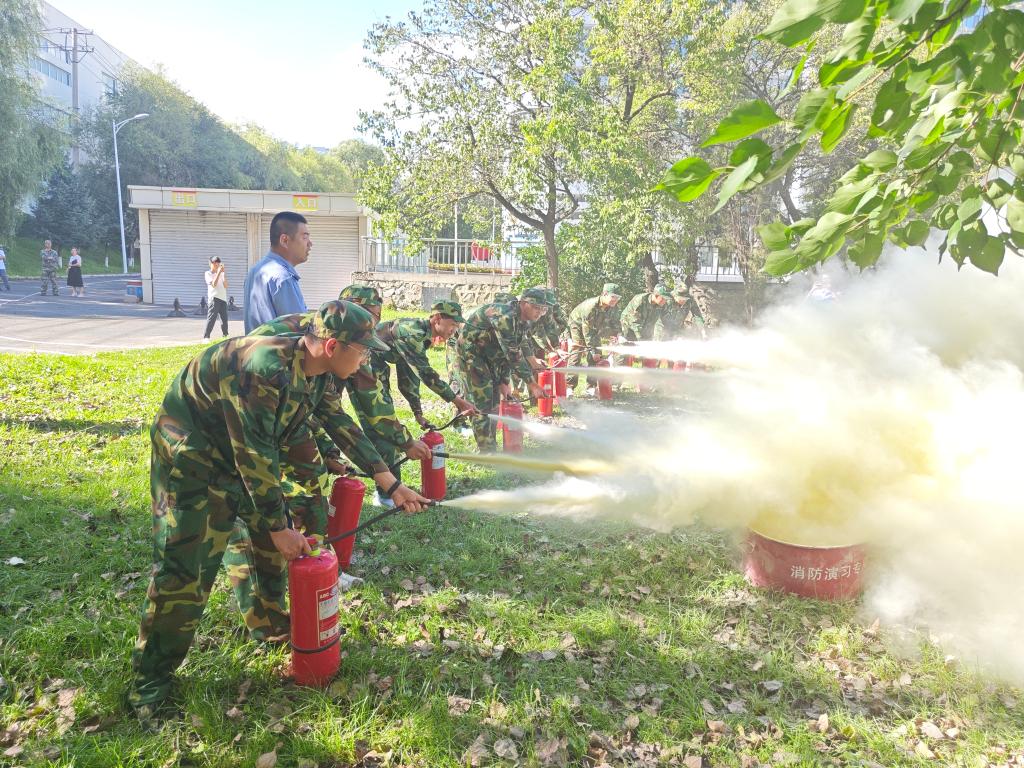 培训结束后,在临床技能实训中心楼前空地处向同学讲解使用灭火器的方法,随后由新生分批次进行灭火器的实际动手操作,确保学生学会练会。