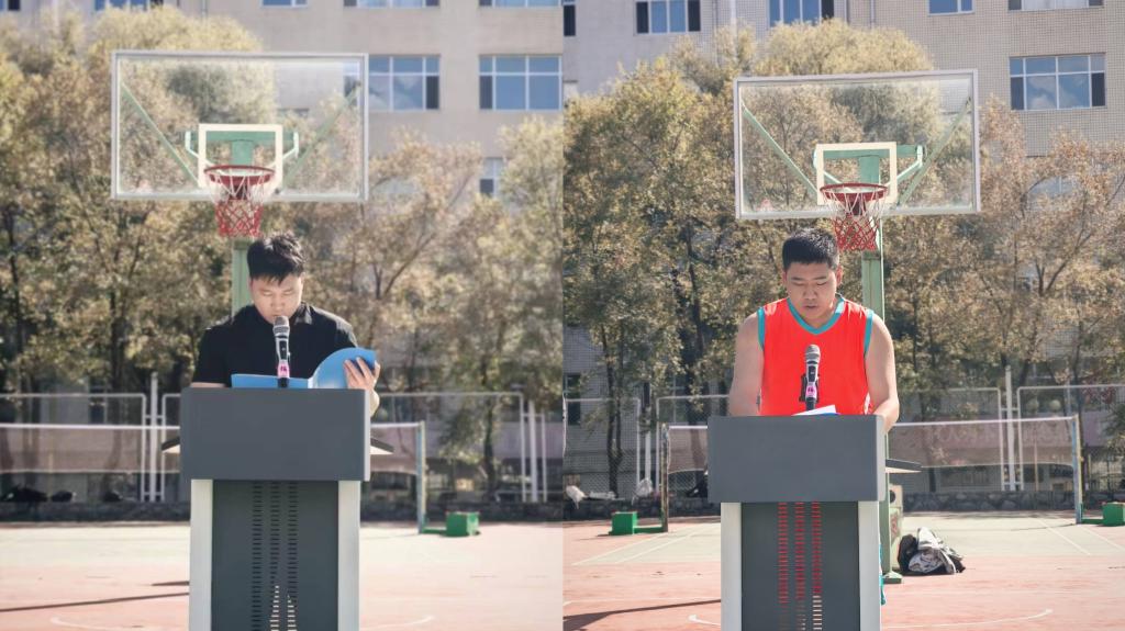 本次篮球联赛队伍由11支来自不同团总支的学生代表队和1支教工代表队组成,赛制采取积分循环制,赛期约1个月。开幕式上23级影技3班麻奥奇作为球员代表发言,感谢学院提供的宝贵机会,丰富了同学们的课余生活,全体球员将在赛场上,以饱满的热情,迎接每一次比拼,享受比赛的过程,同时也会践行“友谊第一、比赛第二”的奥林匹克精神。22级影像2班赵传博作为裁判员代表发言,表示确保比赛过程中的公平、公正、公开,为球员们提供良好的竞技环境,全体裁判员将以高度的责任心,严格执行竞赛规则,准确把握裁判尺度,确保比赛的每一个细节都经得起考验。