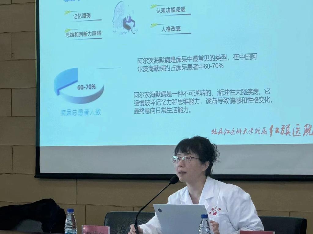本次活动中,雨初社会组织发展服务中心工作人员为大家讲解了“记忆包裹”项目由来、活动的意义及志愿服务内容,肖宝平主任代表“记忆包裹”项目为牡丹江医科大学护理学院授旗,张春丽发言,号召更多的大学生志愿者积极参加到“记忆包裹”志愿服务活动中来,最后红旗医院神经内三科赵维纳主任为全体师生志愿者开展专业知识培训。