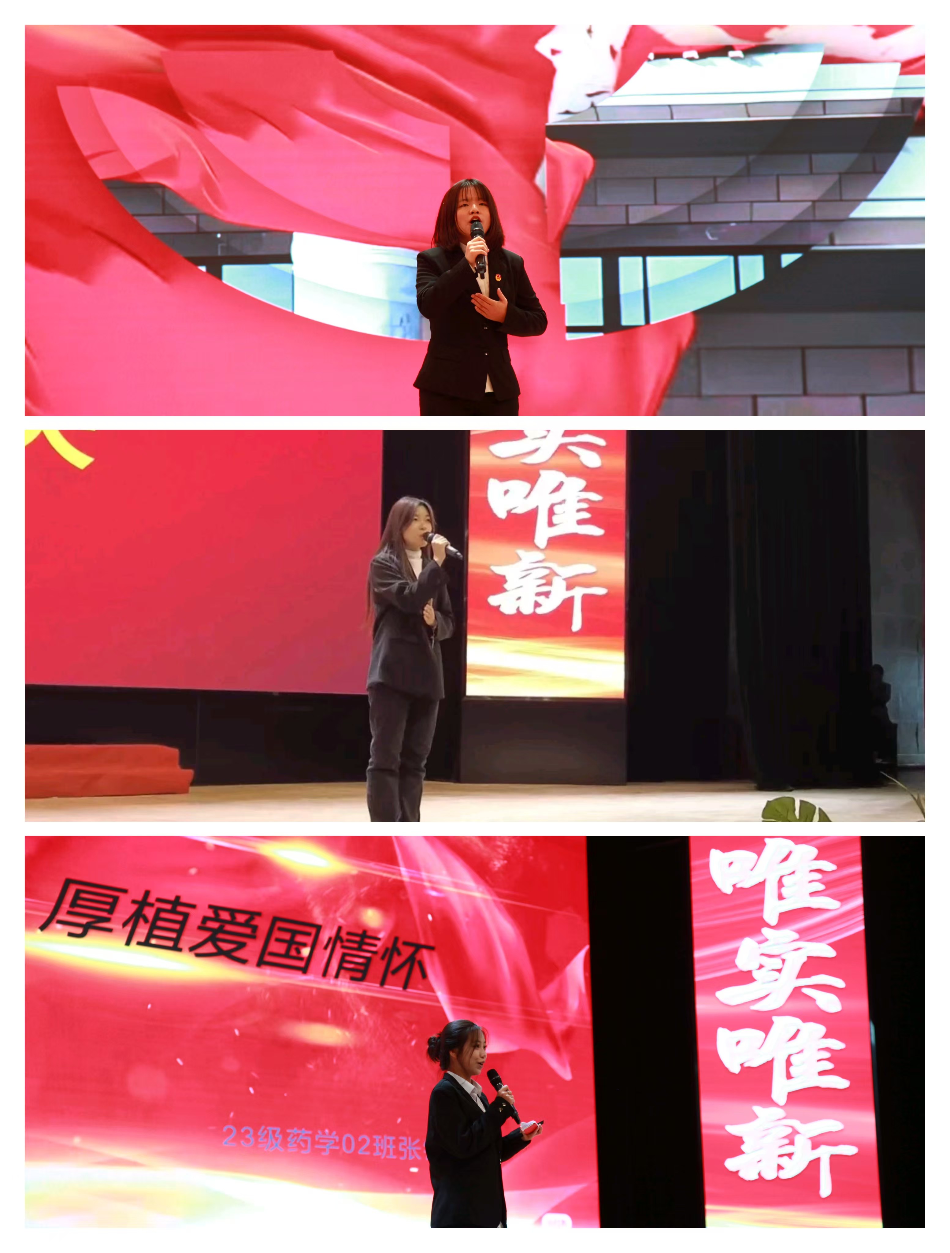 大赛在演讲与口才协会带来的激情澎湃的朗诵节目《中华少年》中拉开序幕。13位参赛者以饱满的精神状态展开了激烈的角逐,他们的声音如同洪钟乍响,清晰而坚定,将时代使命与强国愿景传递至每一个角落,感染着在场的每一位听众。经过一番激烈的比拼,贺雅瑄、张诗其、张锶楠三位选手脱颖而出,站在了决赛第二轮比拼的舞台上。在青年志愿者协会的青春献唱——《百人合唱》中,决赛的帷幕缓缓拉开。三位选手以饱满的热情将一个个动人的故事倾情演绎,让在场的每一位听众都感受到了中国故事的力量和魅力。在宣布比赛结果的间歇,青年志愿者协会为我们带来了舞蹈剧《觉醒年代》,以艺术的形式再现了那个波澜壮阔的时代,激发了现场观众的爱国热情。