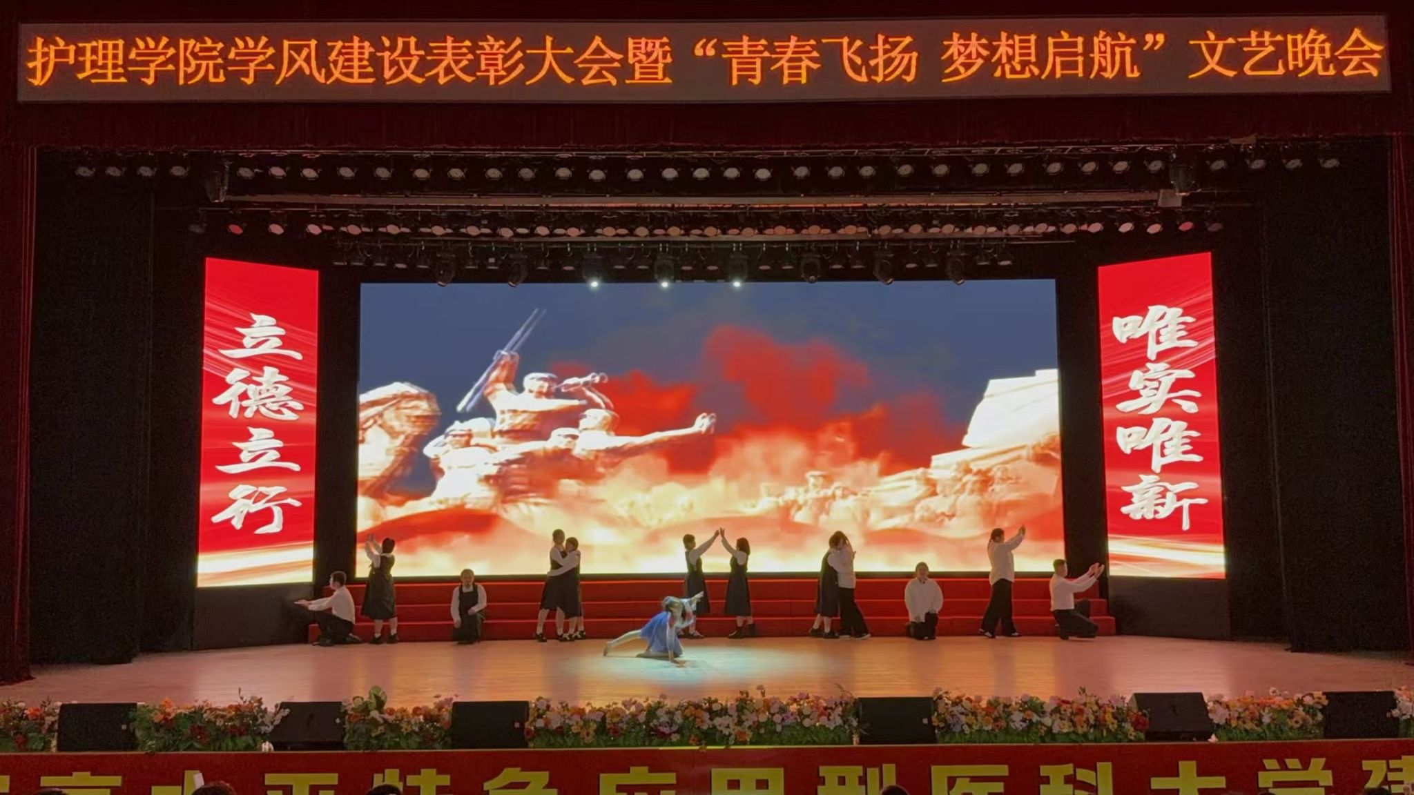 表彰大会后护理学院“青春飞扬、梦想起航”文艺演出正式开始,护理学院学生充分发挥才艺,各展所长,展示了青春的活力与梦想,为师生带来了一场视听盛宴。