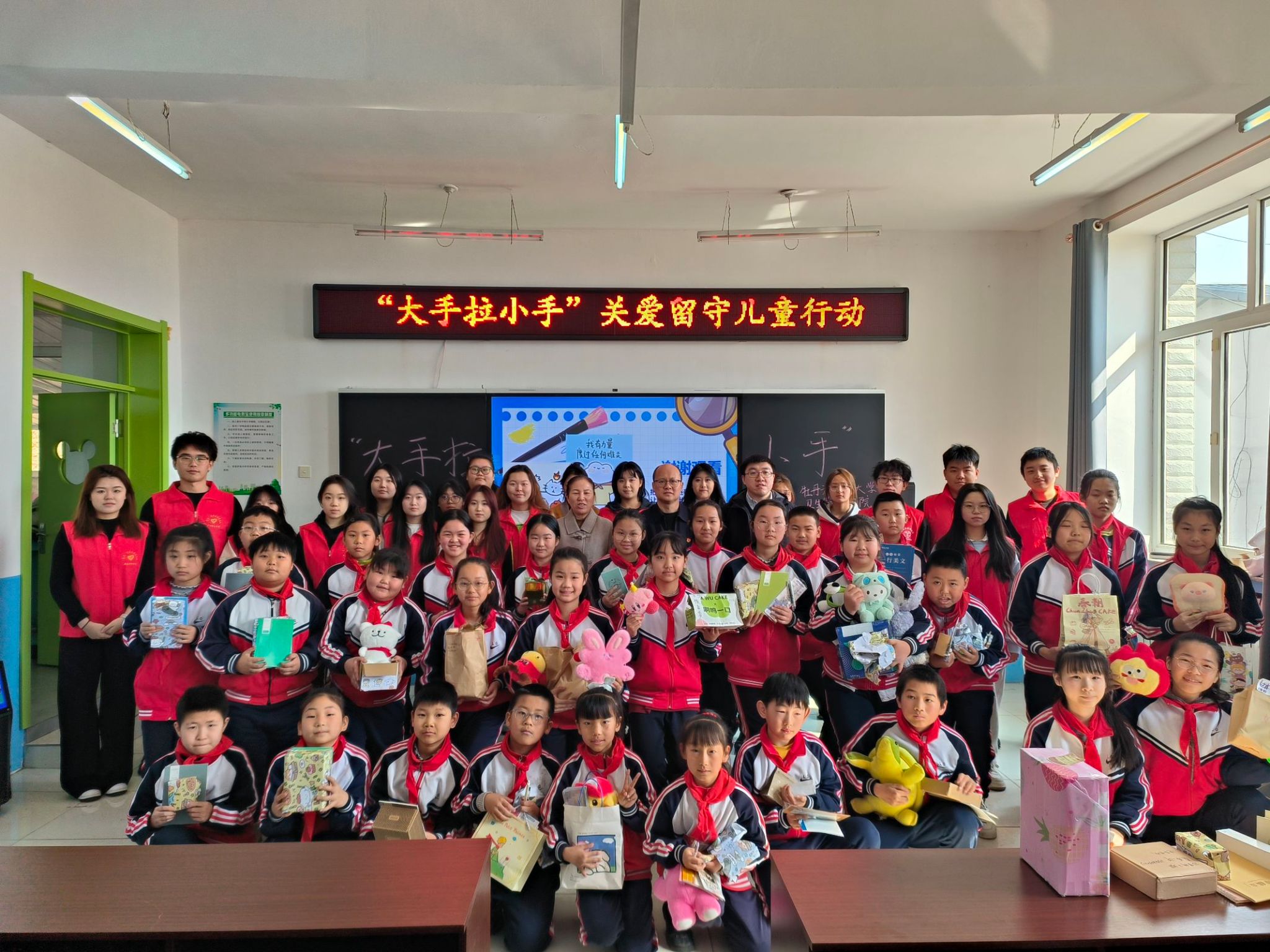 用爱心传递温暖,用真情点燃希望。为深入学习贯彻习近平总书记关于青少年儿童健康成长的重要指示批示精神,进一步弘扬志愿服务精神,3月19日,卫生管理学院组织“春泥”和“星火”志愿服务队走进兰岗镇中心校开展“大手拉小手 ”志愿服务活动。兰岗镇中心校党委书记韩桂红、大队辅导员迟丹、卫生管理学院副处级辅导员樊俊杰、实习就业科科长刘磊参加本次活动。