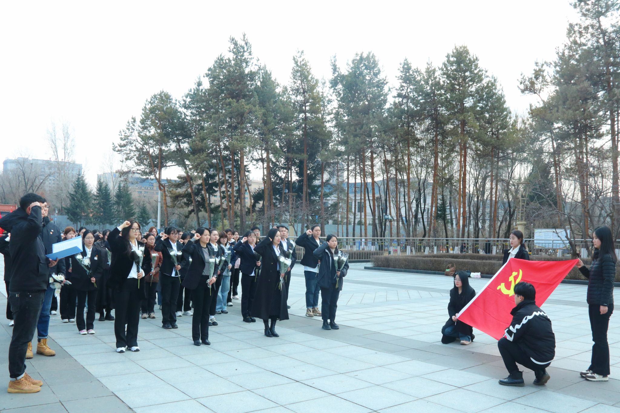 活动当日,天空阴沉,仿佛也在为先烈默哀。全体党员怀着崇敬与沉重的心情,整齐排列在纪念碑前。纪念碑巍峨耸立,在青松翠柏的环绕下显得格外庄严肃穆,碑上“牡丹江抗日战争暨爱国自卫战争殉难烈士纪念碑”几个大字熠熠生辉,诉说着先烈们为国家和人民所做出的伟大牺牲。