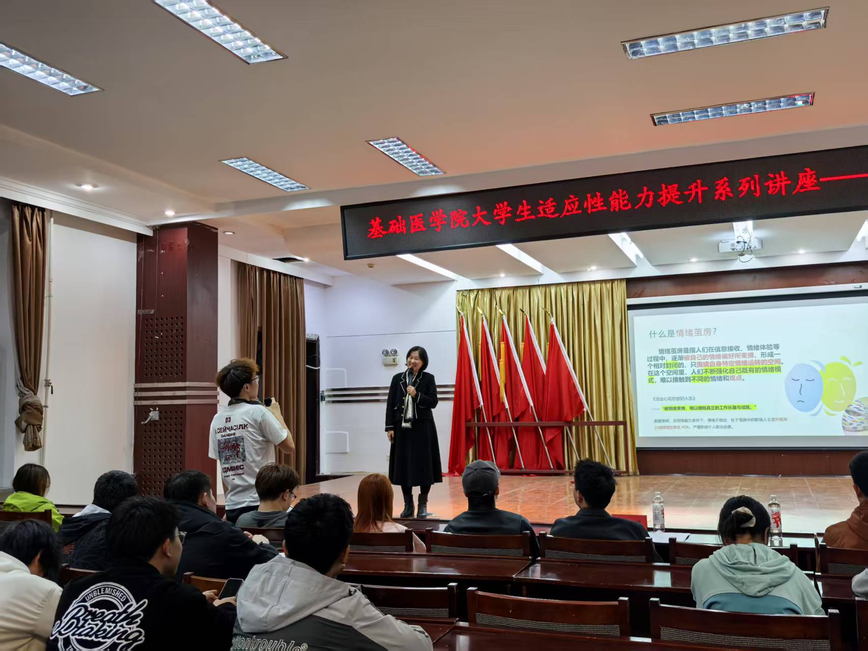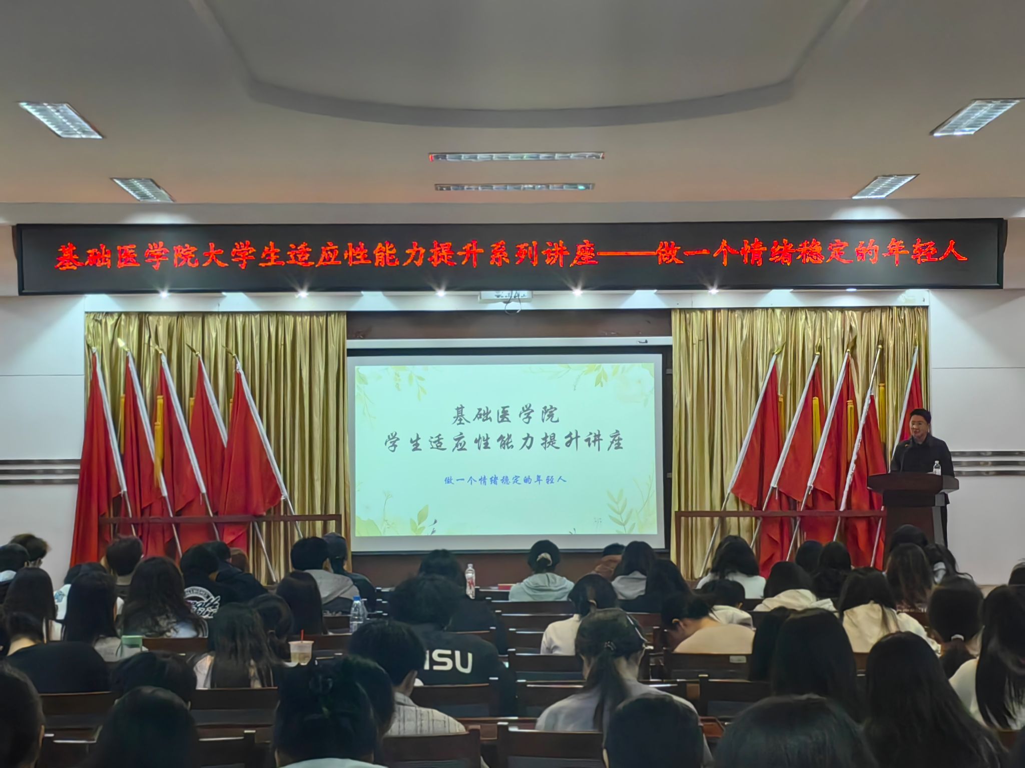 为了提升学生心理调适能力,预防心理问题,改善学生人际关系提供启示,营造校园心理健康氛围的目的。4月10日,在基础楼多功能厅,基础医学院学生党总支以“做一个情绪稳定的年轻人”为主题,特邀国家注册二级心理咨询师付何萍开展适应性能力提升讲座,基础医学院心理工作负责人耿瑞主持,200余名学生代表参与本次讲座。