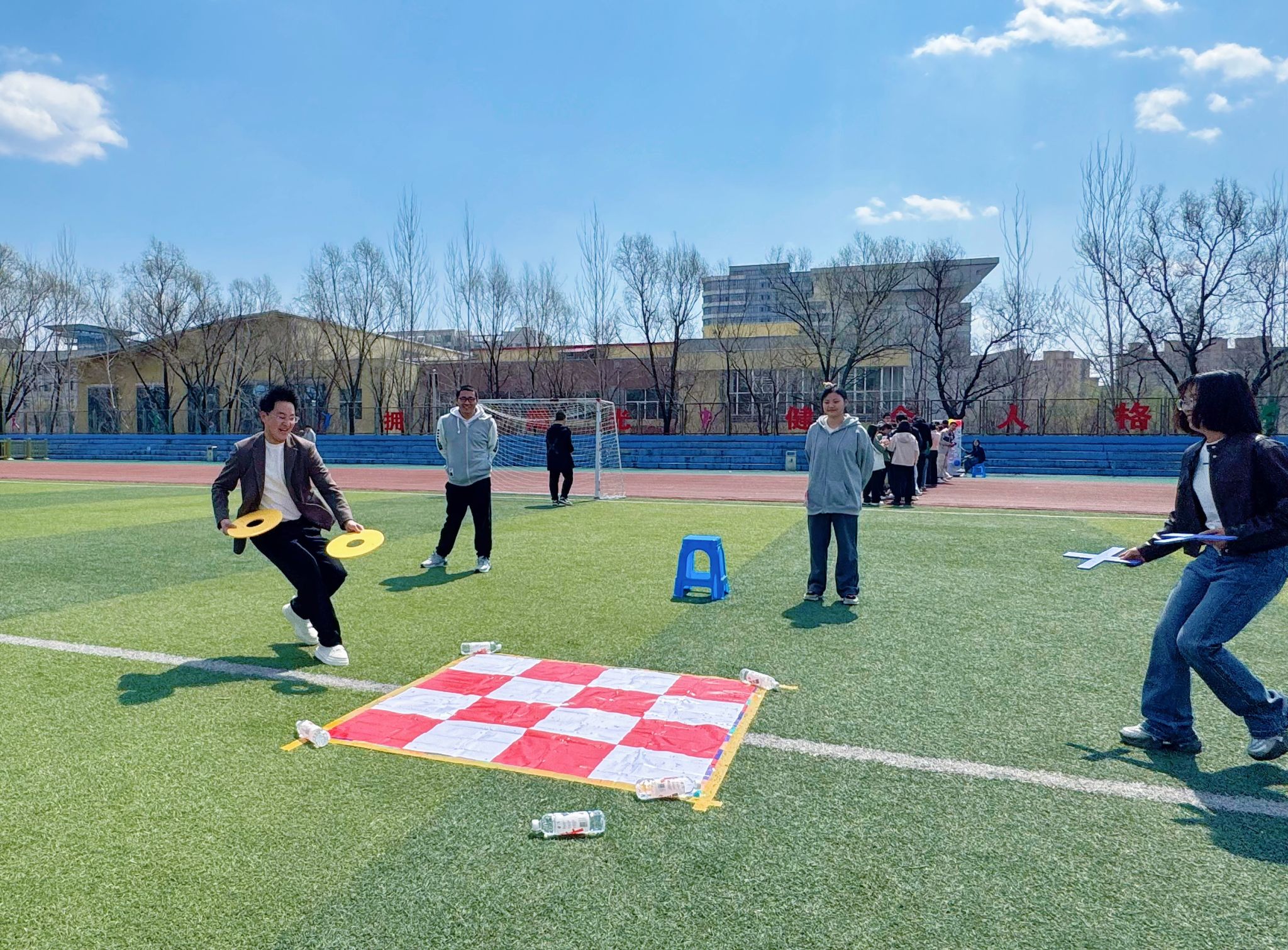 活动过程,六大亮点活动诠释“健康与阳光”。在“撕掉标签”心灵互动墙上,参与者撕下“社恐”“过度敏感”“我不行”等百余张负面标签后,书写了“自我接纳”“成长”“拒绝焦虑”等积极宣言替换,形成“情绪转化-正向强化”的闭环。现场回收祝福卡片三百余张,其中“每个灵魂都值得被温柔注视”等金句引发共鸣。在“接力四子棋”活动中,考验团队默契,提升集体荣誉感,让同学们在协作中感受沟通与信任的力量;在智力纸牌游戏场地里,学生们,斗智斗勇,将内心情绪充分释放在玩纸牌的过程中,完成独特的心灵升阶;在“蒙眼过障碍”信任训练中,让学生体会信任的力量;在传统的“扔沙包”的活动中,进行了趣味改编;在“校园吉尼斯”活动中,激发学生身体素质潜能,创造健康锻炼的“新纪录”;在“拼贴诗”活动中,充分激活学生的艺术创造力,以散文或寄语的方式,抒发学生内心对美好的生活的情感。