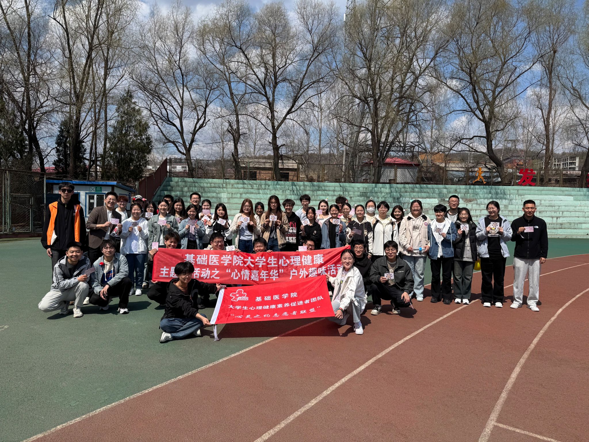 为提升学生心理健康素养,营造阳光、互助的校园文化氛围,基础医学院大学生心理健康促进者团队“心灵之约志愿者联盟”于4月20日至26日在学校运动场举办“心情嘉年华”系列活动。活动以“趣味+体验”为核心,融合文学、美学、体育与创新教育,吸引全校800余名师生参与。基础医学院心理健康工作负责人耿瑞负责组织本次活动,基础医学院党委副书记刘颖教授、辅导员王慧敏、辅导员赵中林出席本次活动。