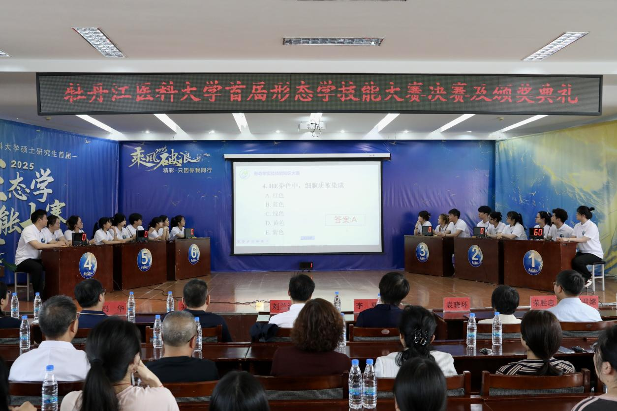 在教育、科技、人才成为中国式现代化基础性、战略性支撑的时代浪潮中,牡丹江医科大学积极践行教育强国战略,深耕医学人才培养沃土。2025年6月18日上午,研究生首届形态学技能大赛决赛和颁奖典礼在基础六楼多功能厅举行。基础医学院、生命科学学院、药学院、公共卫生学院、第一临床医学院五个研究生培养单位的117名研究生组建了39个参赛团队参加比赛。