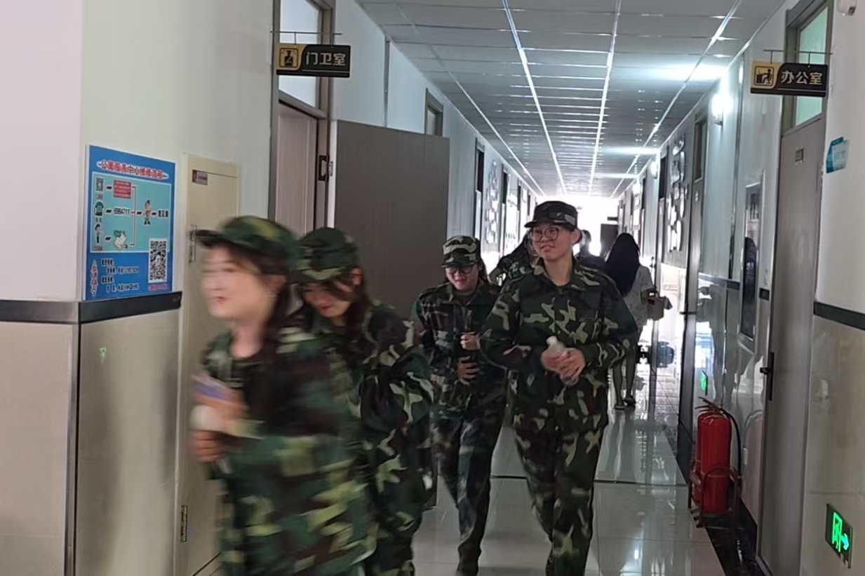活动于13点45分准时开始,首先进行的是9个学生公寓的应急疏散演练。随着警报哨声响起,全体新生迅速反应,捂住口鼻,弯腰低姿,沿着预定的疏散路线快速、有序地撤离到操场集合。整个疏散过程紧张有序,充分展现了同学们良好的应急素质和团结协作精神。